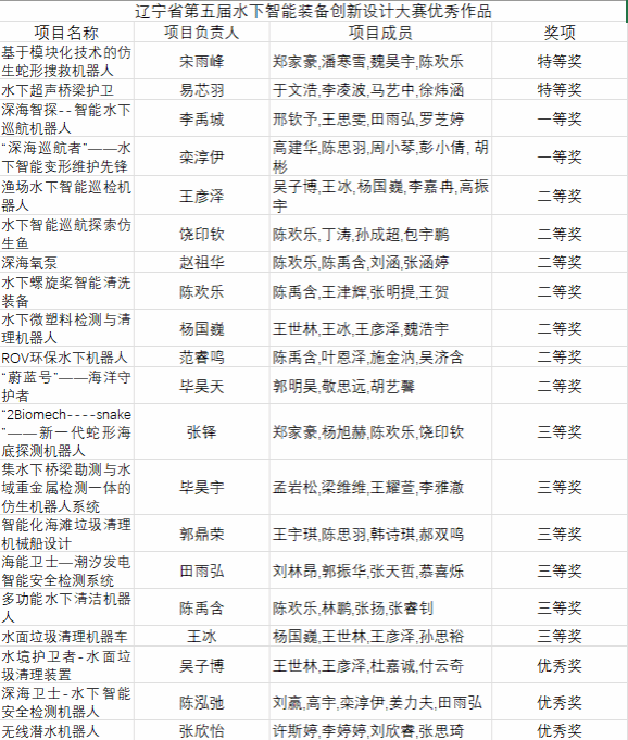 我院承办的辽宁省第五届水下智能装备创新设计大赛,经过前期校赛组织选拔、集中路演、针对性指导,8月27日在大连结束的省赛决赛中取得优异成绩,获特等奖2项、一等奖2项、二等奖7项: