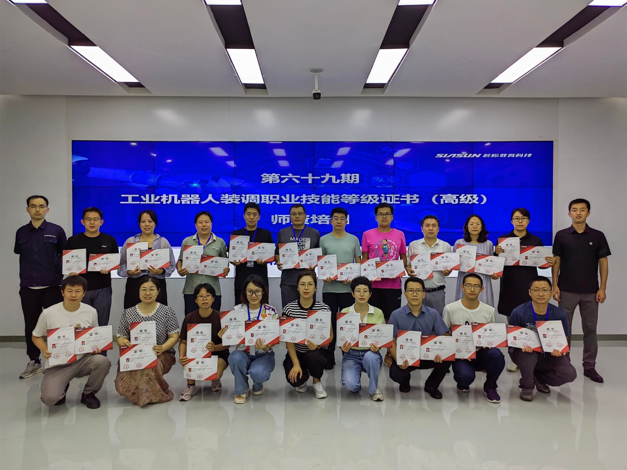 在培训期间,参训老师们不仅系统学习了工业机器人和智能制造产线的操作技能,还深入了解了相关设备的维护与故障排除方法并亲自动手组装和调试机器人,通过实际操作来巩固理论知识。通过与新松教育集团的专家团队进行深入交流,老师们掌握了最新的行业发展趋势和技术革新,为教学内容更新提供了宝贵的第一手资料。在最后的培训考核环节,全部参训老师考核合格,取得技能等级证书及考评员资格。