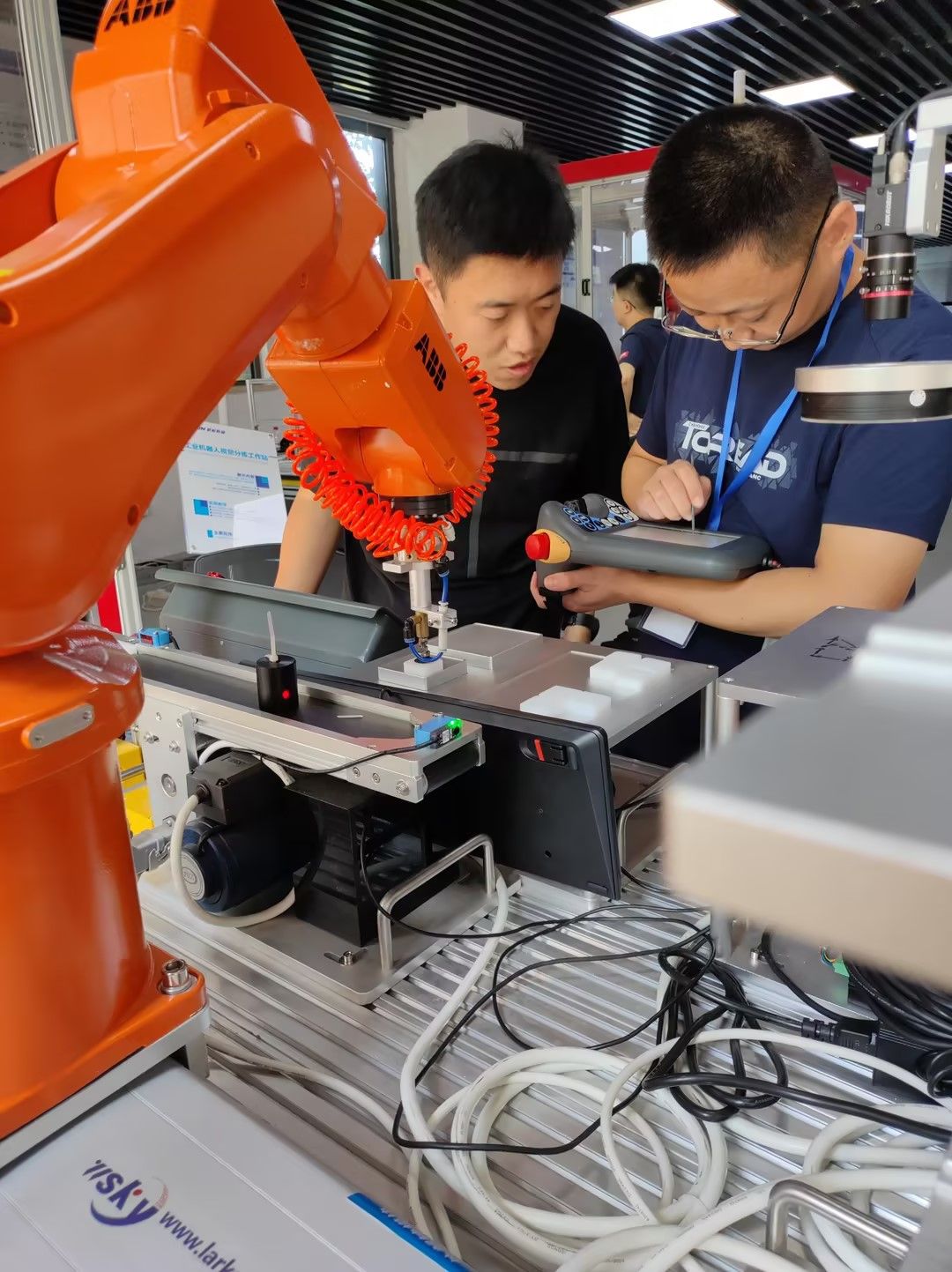 为提高学院实践教学质量,提升教师实践教学技能,学院与新松教育集团合作于2023年7月至8月,分2批次,共派出人去新松教育集团开展工业机器人和智能制造产线职业技能等级培训。