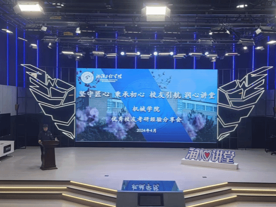 为帮助我院考研同学精准考研目标并给予同学们更优质的学业规划。 4月22日,机械学院邀请优秀校友陈鉴朋到灵感楼多媒体教室,进行了以“坚守匠心,秉承初心,校友引航,润心讲堂”为主题的考研经验分享会,机械学院党总支副书记兼副院长汪浩、机械学院团委书记兼总辅导员王慧、机械学院辅导员杨晓寒和机械学院部分学生代表参与了此次分享会。会议由机械学院辅导员夏海明主持,分享会的开始,夏海明向同学们介绍了校友陈鉴朋,并迎来了热烈的掌声。