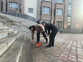 课余之际,他们总是在用行动诠释“退伍不褪色,退役不退志”的军人信条。默默的为学院,为同学们付出着。看到教学楼室外楼梯上结冰,他们担心师生上下学的安慰,主动带着工具清理薄冰;看到凋落的枯叶影响路面的整洁,他们借到扫把认真清理路面的落叶;看到被大风吹倒的自行车,他们默默的帮助同学们扶起,并摆放整齐……像这样的小事还有很多很多,那利落的行动、默契的配合,无不彰显着曾经的军旅烙印。
