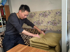 寝室里,他们依旧将纪律严明的良好素养铭记在心,从未松懈,整洁的寝室,窗明几净,随处可见的“豆腐块”,为学生宿舍4号楼又增添了一道亮丽的风景线。