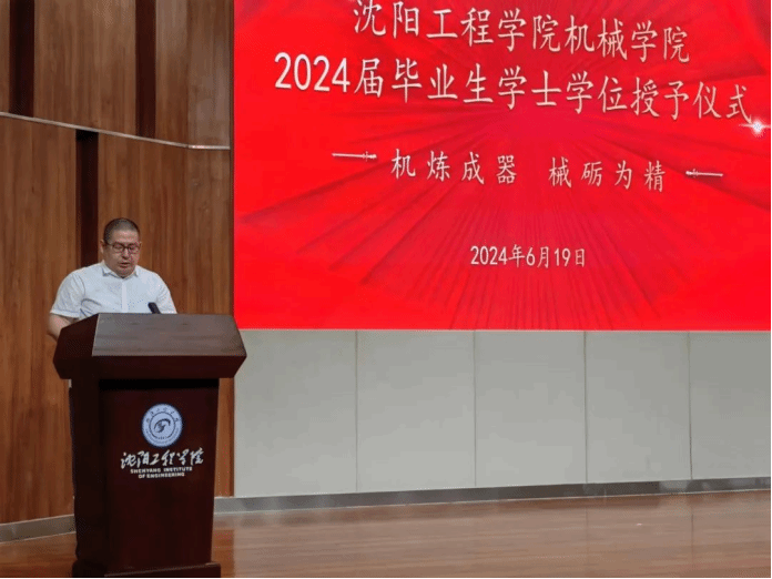 骊歌未央待续华章,云程发轫万里可望。6月19日上午机械学院在图书馆报告厅隆重举行2024届毕业生授位仪式。学院领导班子、各专业负责人、各教研室主任、教师代表和全体辅导员出席典礼,与2024届毕业生一起带着激动和喜悦的心情共赴盛典,分享这一难忘的美好时刻。机械学院2024届毕业生学士学位授予仪式在学院党总支副书记兼副院长汪浩的主持下拉开帷幕。
